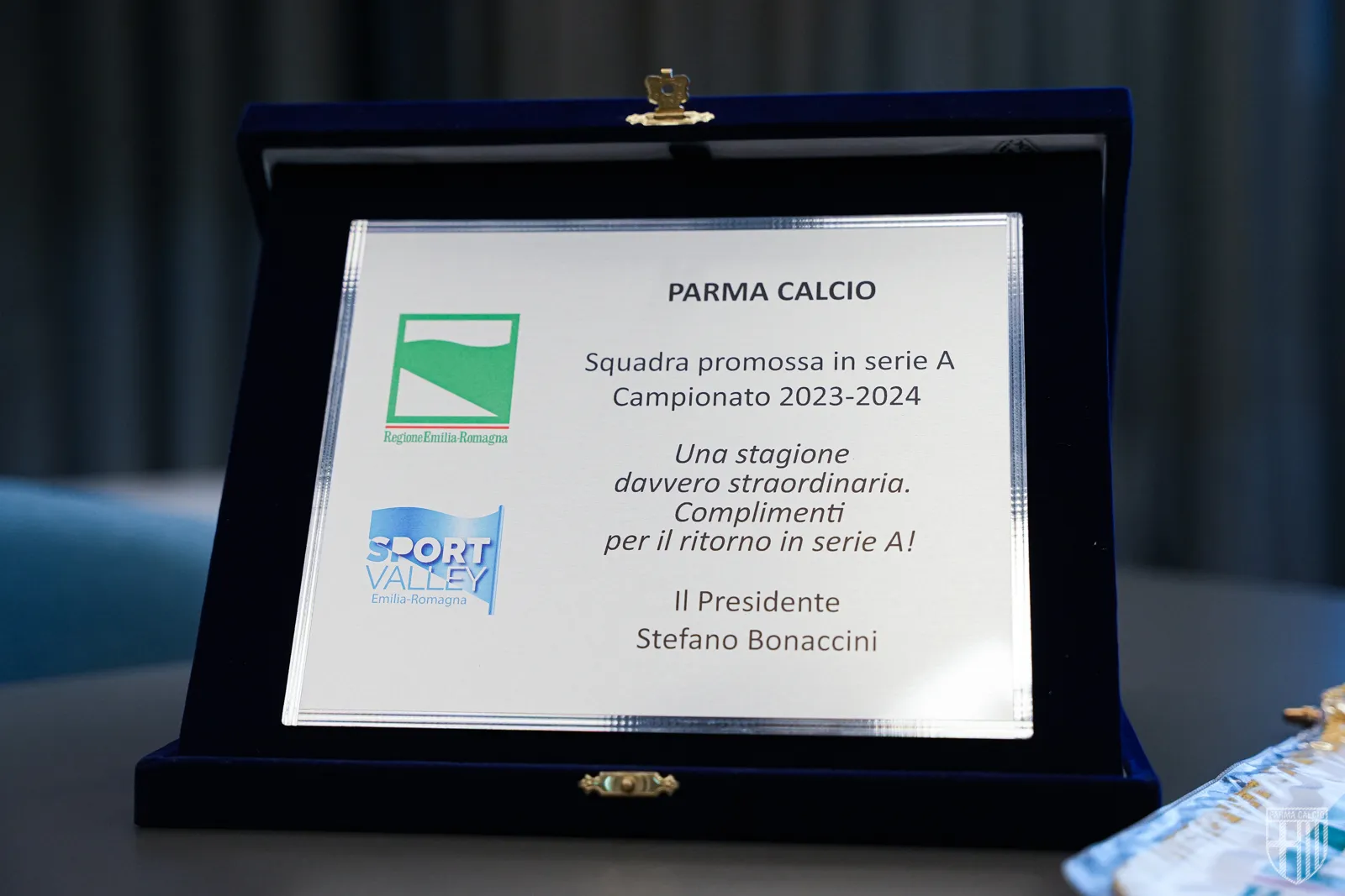 Bologna, 23 May 2024 – Recognition for a fantastic campaign that saw the Gialloblu promoted to Serie A with three games to spare. Today, in Bologna, Parma Calcio 1913 received an award from the Presidency of the Region.