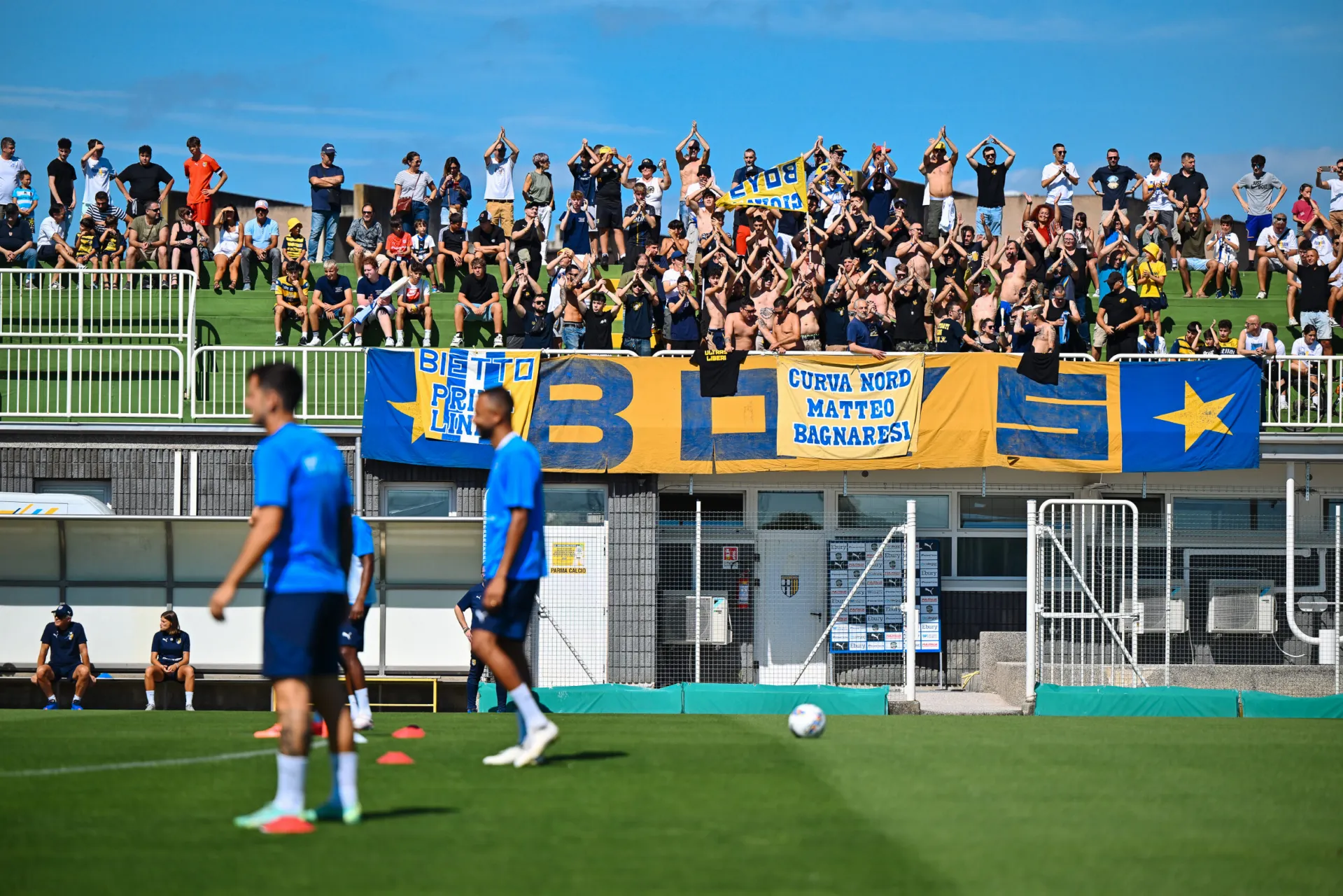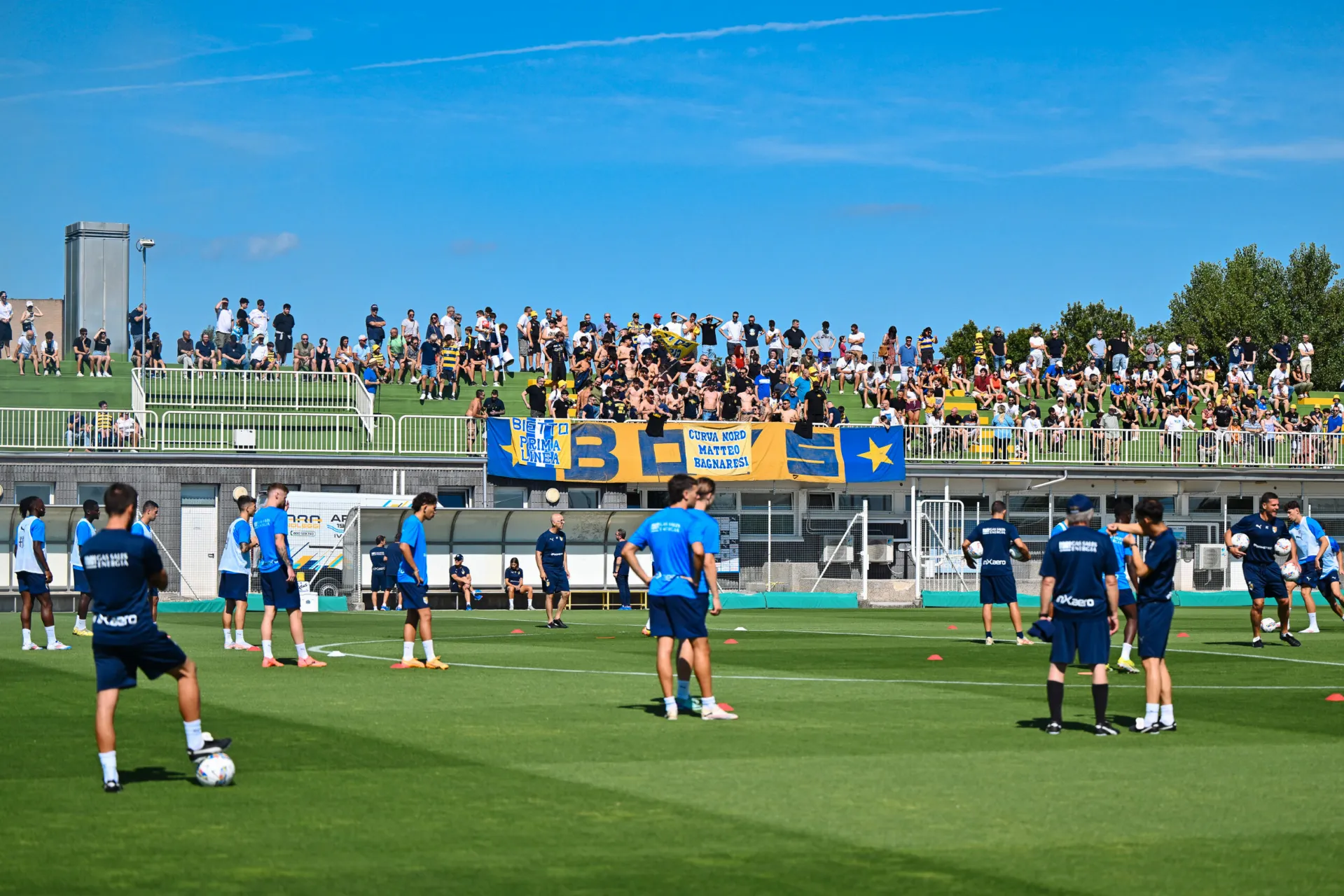 Collecchio, 6 July 2024 - The Gialloblu were met with a warm welcome this morning on the Youth Sector main pitch at the Mutti Training Center in Collecchio ahead of their fourth summer training session. Over 500 fans were there to embrace the squad ahead of the 2024/25 season with a session open to the public that allowed the fans to watch the lads at work from up close under the watchful eye of Fabio Pecchia and his staff.