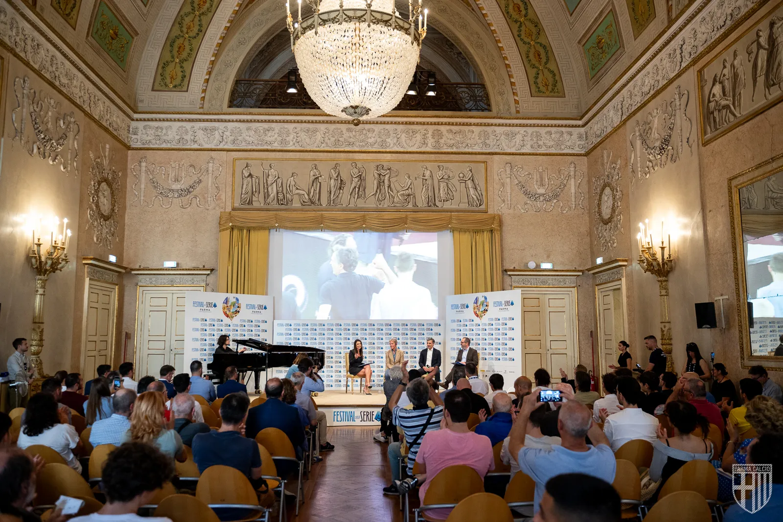 Nella splendida cornice del Ridotto, davanti a una platea affollatissima di tifosi e addetti ai lavori, Il Presidente e l’allenatore del Parma Calcio, accompagnati dai moderatori Monica Bertini e Claudio Rinaldi, hanno aperto l’album della stagione, composto da passione, lavoro e aneddoti, che ha permesso di rivivere il primo posto in classifica della squadra gialloblu. E’ stato un panel che ha raccolto successo e grande emozione, applausi e divertimento da parte dei presenti, che hanno potuto vivere questo viaggio, accompagnato dalle immagini più belle, e dalle parole dei due grandi protagonisti, Kyle J. Krause e Fabio Pecchia.